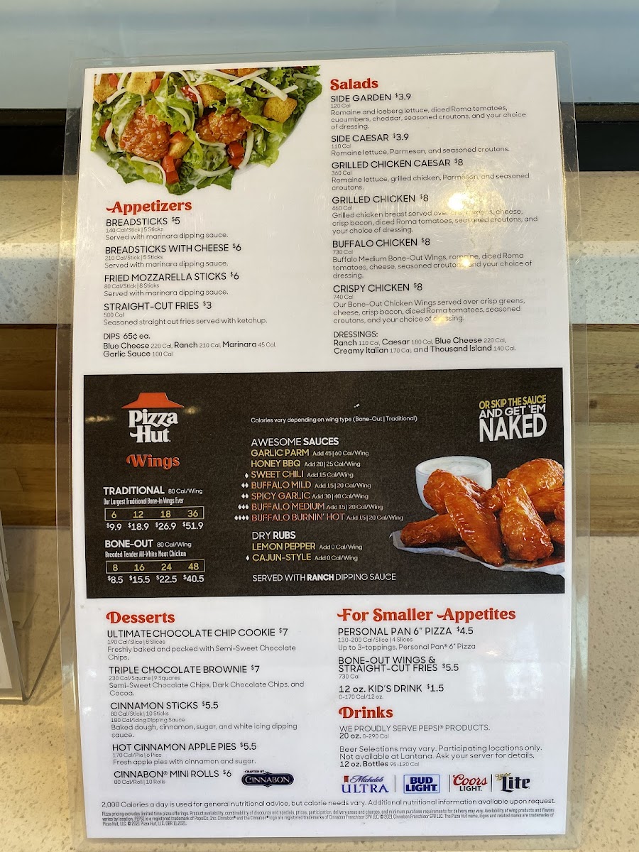 Pizza Hut in Cross Roads, TX, offers a diverse menu that goes beyond classic pizza, spotlighting a variety of flavorful options tailored for delivery, takeaway, or dine-in experiences. Highlights include their Traditional Wings and Breaded Boneless Wings, which pair perfectly with popular sides such as Breadsticks, Cheese Sticks, and crispy Fries. For pasta lovers, the menu features hearty Oven-Baked Chicken Alfredo, Italian Meats, Cheesy Alfredo, and Veggie Pasta dishes, all baked to perfection. Refreshing beverages like Pepsi®, Mtn Dew®, and Sierra Mist® complement the meal options.